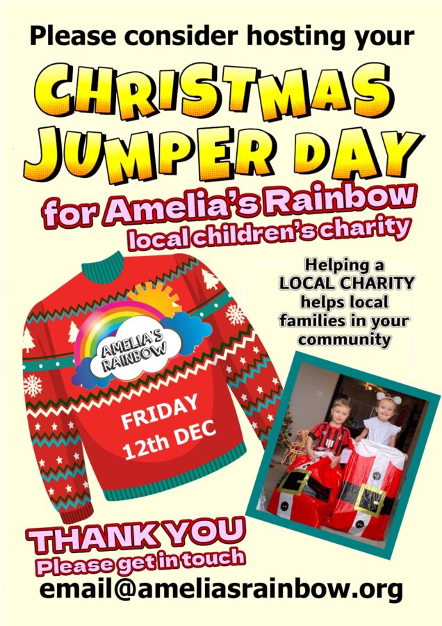 Fancy hosting a Christmas Jumper day this year for a local charity then why not consider Amelia’s Rainbow. We support 170 children in the Dorset area with life limiting, serious or chronic conditions. If your business or school etc would like to take part then please get in touch with us.